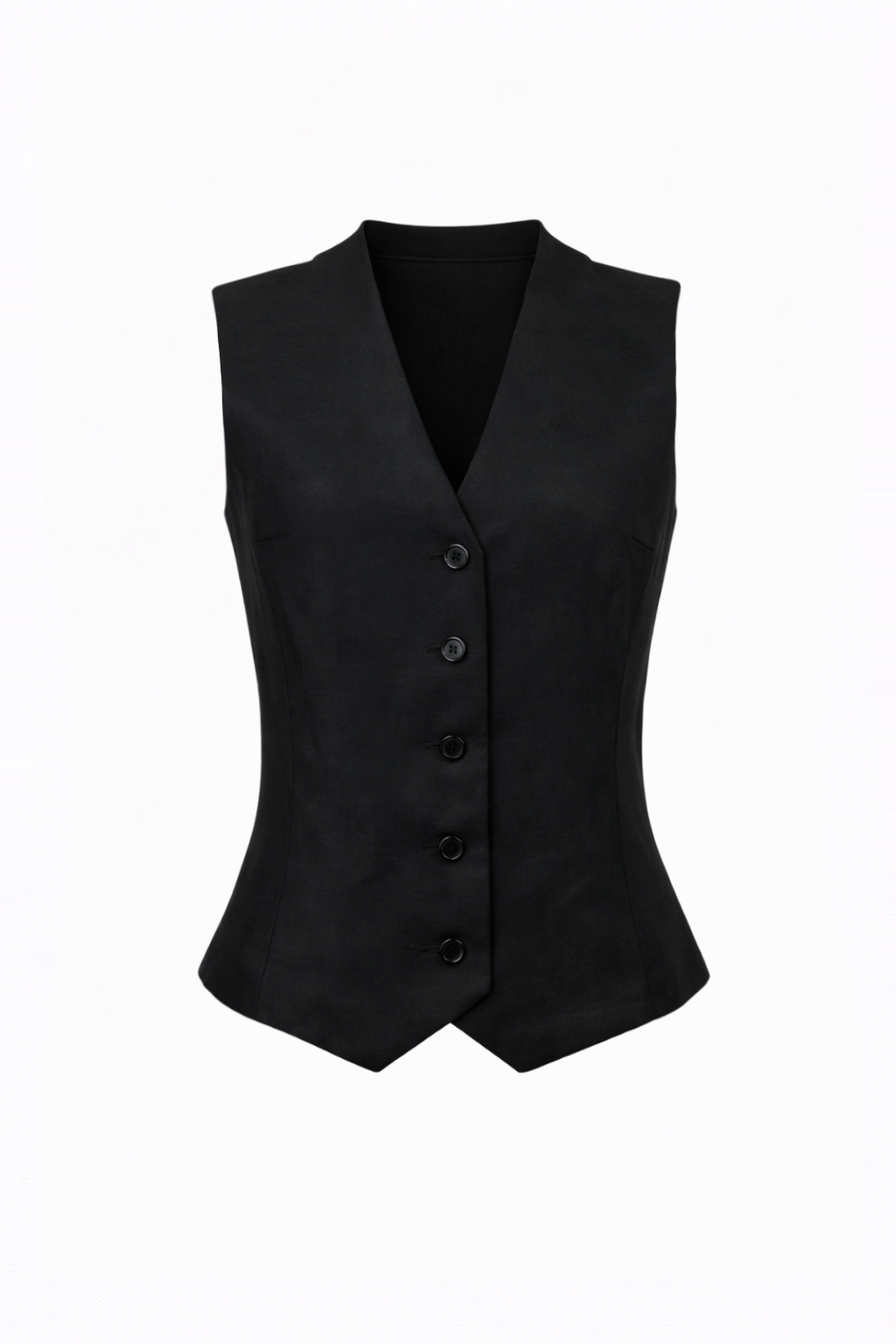 Karcsúsított szabású mellény természetes len anyagból. Letisztult V-kivágás, elöl gombolással. A hátoldali megkötő lehetővé teszi a derék finom állítását.